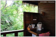 Sensi Paradise位于西立海滩(Sairee Beach)的南边,从码头步行也只不过要短短的三四分钟。而西立海滩则是龟岛最繁华的沙滩,各种生活需要的东西一应俱全。 和Kirikayan一样,Sensi也早早准备好饮品等待将要道来的客人。这些细致的地方正正体验出泰国作为旅游国家的待客之道吧。在品尝饮品的同时,Sensi的工作人员会耐心想你讲解一些注意事项。除了一些如早餐的开始时间以及餐厅的位置等的东西外,工作人员解释每个房间内有5瓶的饮用水,其中两瓶是免费,其余三瓶是收费的。每瓶30B。另外、可以代购龟岛到帕岸的船票。价格与直接到码头买是一样的。450B/人。 放下行李,肚子已经是饿得不行了。一班人决定再次采用就近原则,到酒店的餐厅享受这个迟来的午餐。餐厅的食物基本以西餐为主,我们点了两个Pizza以及一些意大利面之类的东西。 令人遗憾的是星级收费下出品却未尽人意。算了,安慰自己一句输了味道赢了环境吧。。。 Sensi是依山而建的,整个酒店都被树木包围,每个房间都采用木结构建造,比较有热带风情。(但遗憾的是正正因为树木的遮挡,与海景无缘了。。。) 。Sensi的早餐选择不多,只有一些水果比较受欢迎。