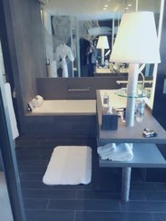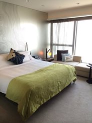 W酒店是喜达屋旗下的全球现代奢华时尚生活品牌,其官方的定位是“Lifestye”品牌,业内普遍将其归类为大型的boutique hotel路线。W酒店的目标宾客很明确,是那些时尚潮流的创造者。他们大约年龄在30到35岁之间,受过良好教育,一般没有小孩,对最新、最酷、最时尚的东西感兴趣,他们了解时尚,很关注时尚,并且也希望自己能被时尚界所融合,喜欢去时尚酒吧、参加电影首映或是钟情某种时尚音乐或音乐元素,并且他们还对设计有着独到的见解,这些见解可以源源不断地激发设计师们的灵感。” 香港W酒店是大中华区的第一家W酒店,地处西九龙地区,是一座气势恢宏的海滨标志性建筑,四周遍布香港最热门的夜生活场所、历史悠久的艺术殿堂、绚丽多彩的历史遗迹。底楼不是大堂,有一个餐厅、一个礼品店以及连接圆方购物中心ELEMENTS的通道。上了入住check-in的电梯,脚下就是这种随着时间变化的荧光屏,迷离模式瞬间开启。你能想到这里藏着电梯吗?好象一个书房,两边的墙壁都是书柜和书,电梯的按钮也在书柜中间,不仔细还看不到。 房间号是一本书,进房间啦~~我们定的是绝佳客房大床房,终于看到这张传说中10万元的床了啊!!感觉自己躺在钱堆上了。对面的电视墙,拉上就是整面墙的镜子,移开,露出电视机,四周一圈都是音响。