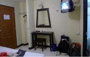 Rikka Inn在考山路的东头,比较显眼,楼顶上有游泳池,三人房2晚3500铢,免费上网,吹风机、瓶装水、开水壶都有,就是三个床一放房间里剩下的空间就不大了。游泳池可以免费使用。第二天走路去大皇宫,最多半小时就到了。