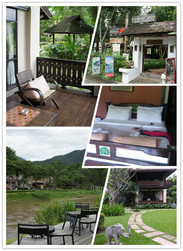 派河角度假村酒店 (Pai River Corner Resort)含早,435元每晚。拜县的酒店都是非常有特色的,风格迥异,有原生态的如树屋,童话情节的如marry pai,但那些都远离市区。拜县是需要租摩托车代步的,考虑到安全因素,我可不希望晚上开车出状况,所以我定下了这个酒店。 酒店在河边,占地面积挺大的,都是一幢幢二层的小屋,木结构的房子,很复古。移门外是个露台,坐在那儿赏景,空气中弥漫着淡淡的花香,又安静又惬意。整个酒店一共才10几个房间,建议订15号或16号房,这一幢楼的露台面向河流,外面的景色最漂亮,视野很宽阔。酒店地处路的尽头,下巴士后往河的方向走就是了,很近的。晚上出门就是夜市,哦哪,超赞啊。