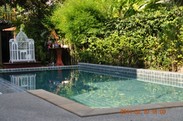 这个酒店还不错,环境很好,带早餐,,该有的东西都有,地方也与老城不算太远,还提供租车服务,开租车业务的是个警察 !你不在这里住还可以免费帮你存行李,总之很不错,下次去一定就住这里。住这里的老外不多,中国人多,50间房40间是中国人,我们住的时候还碰到几个武汉的了。订这个酒店的主要原因是酒店有个工作人员叫阿聪,会说中文,还说的不错,人也很好,晚上一搞还和我们做院子里聊天。还会用优惠价格帮你预定你在清迈的行程。所以这个酒店在中国人的圈子里口碑很好,比汉清迈要好得多,汉清迈帮你订的东西会比较贵。