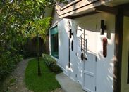 酒店的房间非常紧张,整个酒店只有7个独立的小villa,其中1-6是Honeymoon room,房7是family room。每栋独立的小villa大约有200多平,并包括室外浴缸和室外冲淋,每套房子都有小溪环绕,所以,在溪边还可以躲在树荫下乘个凉。当天在酒店享用了午餐,看之前网友的评论,就评说这家酒店的餐饮味道很不错,中午点了酒店的冬荫功汤,很好吃,味道非常好,但是,真是饿极了,照片也没有拍,就吃光了