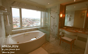 在韩国属于五花酒店,虽然是五花,根据网上评价,差不多相当于国内的三星水平。可能抱着比较低的预期值的关系,实际比预想的要好很多。酒店地理位置比较好,位于济州市北面,毗邻大海,出门就是一排韩式餐厅,对面就是易买得,离商业中心差不多10分钟左右步行时间。吃饭购物都比较方便。