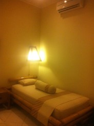 Rumah Mertua Boutique Hotel 官网: www.rumahmertua.com 房型:Standard Twin Room IDR435,000/night(Include Breakfast) 约人民币262元 这家是我非常非常爱的酒店,浪漫的庭院还有爪哇式的房间,贴心的服务,最美味的早餐,总之,一切的一切都很完美。不过这里比较偏,感觉就是隐没在村落里,一进去却发现别有洞天的地方,打车去SOS大街大概要20分钟左右。 我们在Booking.com上订的,预定之后他们还给我发了confirm邮件,到达日惹当天还给我发短信询问check-in时间,Welcome drink&snacks也非常赞,第二天早上六点我们去默拉皮,本来都打算放弃早餐了,他们知道后马上帮我们打包了美味的早餐,里面的鸡蛋真的是我这辈子吃过做美味的了,我们想去做SPA,他们还帮我们预约,每次出门都会帮我们提前叫车,实在是再挑剔的人都不知道从哪里找出来这里的不好,怪不得如此偏僻的地方却能吸引游客。 虽然这里很小,只有10间房左右吧,不过每一处的设计都透着玲珑心意,庭院更是美得难以言状,还有个小小的游泳池,WIFI也不错。