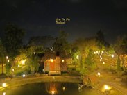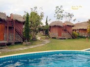 在酒店楼顶露台,眺望酒店一角,感觉像在童话小镇里。酒店背后就是乡野农田,加上几棵热带的芭蕉叶,色彩靓丽不少。楼顶露台上的躺椅,晚上我就是在这看星星的,超级舒服,酒店还有个小泳池。