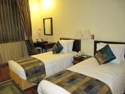 整个酒店完全以帕坦时期建筑风格建设,内外墙全是红色红调,大堂里都是红砖搭起的台阶,甚至有座纽曼丽风格的神殿,极尽舒适豪华。 富百丽内部客房的非常舒适,最让人心仪的是每个房间都有个超大的阳台,天晴的时候,足不出户,躺在床上就看到雪山和峡谷。唯一的缺点只是距离费瓦湖稍远了一些,如果想随时去湖边走走玩玩,就没那么方便了。自助餐不错,可每顿都吃的话也有点腻,大可以点菜,做得比自助餐好多了。富百丽大大的充满各种植物院落,充满风情的建筑装饰,水池居然还有鹅(鸭),和大街小巷上的脏乱比起来,天差地别