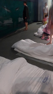 价格:2180 点评:★★★★★ 喜欢海洋馆的小伙伴们强烈推荐去体验一次夜宿活动,非常棒。我们这次住的极地区。本来以为晚上可以看企鹅看到饱,但是10点半熄灯后只有微弱的光,基本看不清企鹅了。这个区域很冷,我们都穿着外套+长裤睡的,早上起来还觉得要感冒了。晚上空调噪音很大,吵得要死。如果怕冷怕吵,可以去大厅或者隔壁展馆睡。 夜宿可以洗澡,独立的隔间澡堂,并且提供吹风。餐食是我吃过比较好吃的团餐了。餐厅在海边,可以边吃晚饭边欣赏日落。夜宵绿豆馔个人觉得比网上盛赞的恒春阿伯绿豆馔还好吃。所以没必要自备零食充饥啦。 另外建议大家好好利用第二天早饭后到大洋池喂食之间的一个多小时在馆内逛,这段时间只有夜宿的游客。我们就瞎坐在大洋池前等待喂食表演,夜宿活动结束才去珊瑚馆,结果全是人。