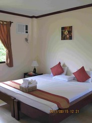 Palms Cove 一家很小的家庭式酒店,是个日本女人开的,位于bohol divers resort的后面。酒店很小,也没有泳池,但是修建的非常漂亮,精致。酒店现在有一栋二层小楼,共有4个标间,还有一栋villa。其实酒店西侧的房子也是酒店的,只不过被老外租住了,据服务员说租房子的老外都在这住了一年多了。酒店的服务人员简直太好了,是我住过4家酒店里面服务最热情、周到的。尤其是那个男生,长得也很帅,可惜临走的时候忘了与他合影留念了。 房间内部设计我很喜欢,到处都透着主人的心思。而且我们要求大床,服务员立马重新进行了布置。值得称赞的是酒店供应热水,而且是淡水的,热水澡洗的相当的舒服。我们在菲律宾的最后一晚就是住的这里,感觉很贴心。有空调,不过是窗式的,唯一不足的是没有电视。