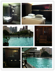 golden tulip mandison suites Bangkok,四星级,是在travelzoo上团购的,398元一晚,双早外加送一张地铁一日票,价格比booking上要便宜将近100元。酒店房间较大、有落地窗、设施不错、有免费wifi,早餐丰盛,很喜欢游泳池旁的吊椅和沙发,欧美人较多。唯一的缺点是离地铁站很远,走路要将近20分钟,第一天到达的时候,我们拖了行李,走的那个叫累。不过酒店有shuttle bus可以送你去地铁站,只是不负责接。总体而言,对于能仍受远离地铁站的TX,该酒店还是比较推荐的,周围可逛的地方不少,性价比良好。