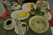 其实只是一个小旅馆, 相当于国内如家水平. Beautiful Saigon 2, 我对它非常满意, 性价比极高, 床品很舒服, 房间干净整洁. 这是一个大床和一个双人床, 一家三口也可以住 。beautiful saigon2的早餐, 小小的一个餐厅, 种类相当丰富, 味道很好. 比后来在美奈的酒店多的多