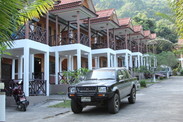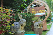 我们在提前在BOOKING上预定了一家叫BANPHU的酒店,两个晚上共1700B。在渡口的的士上稍待了片刻,等车上塞满了人和行李后,车便出发了。从渡口大概走了5分钟,车便开始爬山下坡,翻过了一座山后,便到了一条大街(当时没做攻略,并不知晓那里便是白沙滩)。 在大街上大概走1公里,车在路边停下,司机跟我们说酒店就在街对面了。我们从车上下来,在路边从酒店大门看进去,远远便看到酒店后面是一片洁白的沙滩,几个老外正在沙滩上玩飞碟。我心中生疑,想我订的酒店明明是很便宜,根本不是靠近沙滩的,怎么这家酒店后面会冒出一个这么大的沙滩呢。 我们穿过大街进了酒店,把预定单递给酒店前台,便左顾右盼这个漂亮的酒店。整个酒店是典型的东南亚风格,从酒店大门进来是一个宽阔的大院,放着一些树木和摆设;从大院进来便是酒店的前台和休息区,这个区域全是由木头做成;穿过前台和休息区,便是餐厅和沙滩,餐桌便摆在沙滩靠近酒店的这一侧。 我们正为这家酒店的豪华和外面的沙滩欢喜不己,以为可以住在这么好的酒店的时候,酒店前台无情地告诉我们,他们这家酒店叫BANPU,和我们订的BANPHU一字之差。呃。。。 跟BANPU相比,BANPHU的配置实在是另外一个“境界”了,虽然没有洁白的沙滩,却坐拥了一片青山绿林;没有毗邻热闹的商业大街,却有屡有花香虫鸣不绝于耳。酒店的老板也是非常热情,我们车一到,他便主动帮我们开车门拿行李。下车后,我问老板是不是需要给司机付钱,老板说这是他自己的车,免费的。进了酒店的前台,老板先让我们坐下,还给我们一人倒了一杯橙汁。 在前台,向老板咨询了怎样从酒店去白沙滩以及第二天去浮潜的事,他说一会可以开车送我们去白沙滩,然后回来的时候打电话给他,他过去接我们。至于浮潜,他可以直接帮我们预订,600B一个人,四岛浮潜,包来回接送以及一顿午餐。我们觉得价格还算合适,便在他那里预订了四岛浮潜。从BANPHU酒店开车到白沙滩差不多10分钟便到了,酒店老板亲自开车送我们过去。老板开车是极度的小心,又是一次典型的泰国人的JAI YEN YEN。