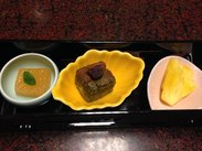 终于吃到了期待已久的怀石料理~晚餐是在房间里吃的,服务员一道一道的上菜,虽说每道菜看着分量都不大,但是最后还是吃撑了呢~另外还是要夸一下日本的米饭一向不是爱吃米饭的人,基本上每顿饭就吃小半碗饭的我,就着味增汤,把一碗栗子饭吃的干干净净!