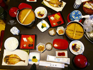 这也是我们这次住的单晚最贵的酒店,住了之后的感觉就是两个字:值得。酒店隔壁的溪流,忍不住拍了几张慢速快门。旧旧的鞋柜,旧旧的地板,旧,但是一尘不染。酒店小哥帮我们搬行李的时候甚至把轮子都擦了一遍。客人的名牌都已经整齐的放好,细节决定一切。整个建筑已经超过百年,每一处都有时光的味道,但又那么干净,足见日本服务业的水准。 老建筑唯一的缺点就是手机信号不好,所以移动WIFI必须要放在窗口。这也算是唯一的缺点吧。除此以外,和式生活的体验是极其不错的。最后绝密放送,家庭池(情侣池)的内部!先用右下角的木盆洗干净才能下去噢!仔细看的话,作为一个洗澡的地方,地上一根头发都找不到! 我们的房费包了早餐。8:30,和服大妈准时帮我们送到。日本的米饭非常的好吃。退房之后,酒店已经帮我们把鞋子和名牌整齐的放在了一起。 走出酒店之后,前台小哥和和服大妈一起帮我们把酒店门口的车拦下让我们过马路坐公车,服务到家!