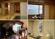 到酒店入住房间,海景+日式居屋+欢迎小点心+糕点礼物+和服真是醉了。服务员基本都不会英语,但是基本上彼此可以互相明白。我们还好衣服就要去迎接会席料理啦!传说中和怀石料理是一码事,究竟有多惊艳?请看图!一道道,然后生鱼片的规模吓倒我了,因为早饭吃的饱,这顿美好的晚饭突然感觉战斗力不足。吃完饭当然是泡温泉,这个酒店美中不足是池子小,但是酒店没什么人,就我们几个在泡温泉,感觉又倍儿爽!