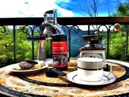 这次在清境入住的民宿是「香格里拉音乐城堡」,不过订房的时候小乌龙了一下,两人房订成了四人房。好吧,楼上楼下我和某小妞一人一层,够奢侈了。音乐城堡的房间都配有很不错的音响,放一张CD让音乐溢满房间,慢慢的手动细磨咖啡豆,浓郁的咖啡香味,然后惬意地享受早餐,这才是人生啊。