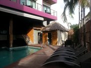当时订行程的时候就木有把芭东作为主要目的地,虽然这里酒吧林立,热闹非凡,我们的兴趣不在泡吧和看人妖上,但这么著名的地方不看看也可惜,所以这里只作为了一个去皇帝岛的过渡。 这个酒店应该是新建的快捷酒店,里面还有新装修的味道,但是设施还不错,也有一个粉可耐的迷你泳池,离江西冷和海边还算比较近,悠然步行15分钟左右吧。