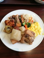 优点:1、房间面积还可以,在日本一般的酒店中应该属于中上水平了。 2、位置不错,出门就是美国村和日落海滩,觅食、购物两相宜。特别是别馆的一楼就有罗森超市,美丽海水族馆的门票可以在这里搞定。酒店分为本馆和别馆,我们住在别馆,从别馆的电梯厅就能看到美国村标志性的摩天轮,下面的各种房子就是美食、购物的所在。酒店楼下,就是沙滩,沙子质量不怎么样,不过小朋友还是可以在这里玩玩沙子,光脚趟趟水的,海水里还能找到不少小鱼。 3、自助早餐品种和味道而言算是不错的。 我最爱吃的猪蹄,强烈推荐,炖的很糯,而且不觉得油腻。味噌汤+米饭的组合也符合江浙人民的口味。靠窗的位置适合看看清晨的海,看着美景,吃着美食,还有什么比这个作为美好一天的开始呢? 4、一些额外的服务。我们订的房间入住后,赠送了一张女宾的洗浴券,如果客房不需要打扫的话,还有500日元的购物抵用券(拿了,没搞明白去哪里用) 缺点:1、千言万语汇成一句话——交通是真不方便,除了走路、包车、打车,我想象不出还有什么出行方式了。酒店门口好像有班车时刻表,但是面对上面一堆日文地址,我连研究的勇气也欠奉。说到底,这根冲绳的交通线路有关,出了那霸,估计其他地方的酒店普遍都会有这个问题。 2、这个缺点可能算不上缺点,不知道靠近海边的海浪声会影响多少人睡眠,反正我是没影响,个人觉得白噪音是有助睡眠的,但是可能会有人不喜欢;而且海边的活动还是挺丰富的,欧美的兄弟们晚上略微有点闹腾。