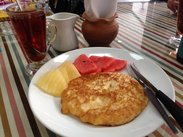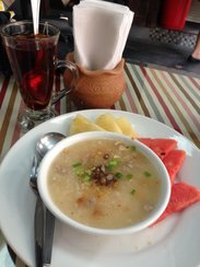 距离塔佩门很近,酒店就位于一处市场内,闹中取静,双床房大约160一晚含早餐,但是房间小的让人无力吐槽。三颗星的分数全部是打给地理位置的。小巷子里全是马杀鸡和小吃,价格公道,是在清迈期间吃到的最便宜的小吃店。马杀鸡价格也不错,泰式按摩+足部+背的全套两小时只要400猪。非常非常惬意的啦~早餐有泰式和西式的,馅饼是现做的非常好吃,稀饭也很推荐尝试一下,好像是用了炸过的大蒜,非常香。(¯﹃¯)