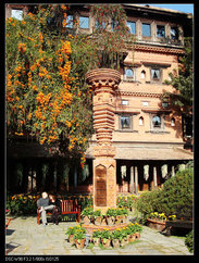 此为私人酒店,此处原本也是居民区,创始人Dwarika先生出于对尼泊尔传统手工木雕艺术的热爱,收藏了许多因房屋年久失修而濒临破坏的木窗雕,由于物件太大,也随着收藏的增多,Dwarikas先生遂萌生了修建酒店,将其收藏融入酒店,为展示这些艺术品提供了良好的渠道,而酒店的营收也能为艺术品保存与修缮提供必要的经济支持,据说当年英国查尔斯王子访问尼泊尔,在加德满都也是住在这里,还捐修了个龙头喷水池。冲这些古物,2000元一晚的标价也的确物有所值。一家私人酒店运营如斯,论硬件已超5星,软件服务也非常贴心到位,我们集体拍手称赞!唯一的美中不足,就是没有免费上网 整个酒店共有80多个房间,房间编号不是按楼层什么来编,就是1~80这么顺下去,我住的是24号,在Lubmini的二楼,门锁就是一把最简单的大头锁头,钥匙坠大得像个大印章,房门很有质感,房间超大