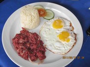 Kalipayan 位于alona beach 西侧的石崖上,我们在这住了3晚。感觉酒店设施很一般,也是我们这次住的最便宜的一家。酒店面积不小,但泳池不大,而且酒店整体修建的不是很精致。感觉有点杂乱,但是在石崖上有个凉亭,风景不错,每天可以在这里看看风景。 房间都是连成排的,面积不大,而且房间设施一般,普通的地砖,窗式机,窗帘很旧还有破洞,不过人少不用担心走光的问题。优点是卫生间有速热的热水器,洗个热水澡非常方便,但是用的是处理后的海水,总感觉洗不干净。 只在这里吃过早饭、晚饭,很一般,不如沙滩上的好吃。菲式早餐的牛肉是用罐头炒的,三明治的分量很足,面包是烤过的,但是味道一般般。老公觉得晚餐的意面还行,我觉得一般吧。