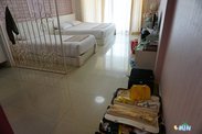 不知为啥中英文译名完全对不上,熊叔叔的家听着很温馨很萌啊,紫色粉彩就有点人妖气质了。一眼相中的民宿,很温馨很少女的感觉,一幢小楼,一二层是上下复式七人间,三层和四层各是一间三人房。 优点:空间宽敞,地理位置优越(门口就是周日夜市,步行5分钟即是柴迪隆寺后门,lila马杀鸡步行5分钟的距离,距离her basics也就步行10分钟的样子),取现超级方便(民宿门口就是ATM机) 缺点:没有电梯,无早餐,店员小妹貌似不太会英文。设施略微陈旧,房间有些小蚂蚁。房费不能刷卡,只能支付现金。 我们的房间在三楼,是粉色风格的,四楼的貌似是蓝黑色系的。进门左侧有个小客厅,有微波炉,冰箱,餐具,电水壶,设备齐全;看到那扇蓝色百叶窗了吗,整个粉色墙面都是卫生间,窗口即是浴缸位置