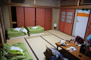 日式房间,老板是一个曾在西安留学,在台湾呆过多年的日本小伙子。穿着侉侉的掉档哈伦裤,人字拖,带着小毡帽,在我们与前台英语交流不畅的情况下,老板突然开口,说着台湾腔的普通话,告诉我这是一间青旅,不接受儿童。啊?不是Guest house吗?没写青旅啊,他告诉我Guest house就是青旅。啊?是吗?不是民宿的意思吗??但到达时已经七点多了,天也黑了,他就说现在也不好找,那就在这里住吧。并且帮我调整了一个比较大的房间,儿童适当加了一点钱人还是挺友好的。。 有评论说此间酒店老板对大陆游客态度不友善,我想主要是针对客人在塌塌米房间里穿拖鞋,不习惯日式房间导致的。此间酒店一进门就是一个台阶,旁边是非常大的鞋柜,全部鞋子都存在鞋柜里,所有的地方都是光脚,洗手间和浴室是备了拖鞋,如果你穿着拖鞋,我想他自然不高兴,会导致对大陆游客这方面的习惯有些紧张,会提醒你不可以穿拖鞋进入室内,同时也令我们大陆游客感觉不舒服,有被歧视的感觉,其实我倒觉得不必过于敏感。