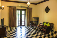 因为我们有3人,订的的是二室套房,含税126USD/天 (提供1室套房供参考68USD/天) 在此提供酒店联系方式 Tel:+855 63 96 60 60 Email:enquiry@chateau-angkor.com Web:www.chateau-angkor.com 这家酒店首先位置绝佳,位于法式街区,是典型的法式殖民建筑。离Old Market、Pub Street仅有步行 10分钟不到距离,离Lucky Mall更是只有5分钟路途,在晚上出去hang out简直绝佳,深夜又安静,不会被打扰。其次,房间超大超给力,一室套房有82平方,二室套房更是128平方。我们住的二室套房有客厅一间,阳台一间,卫生间两间,卧室两间,厨房餐厅一间,配套洗衣机、电熨板、多士炉、内嵌式烤箱等等。最值得一提的是厨房,如果要开火只要和服务员说一声,他们回来装煤气瓶,橱里锅子砧板餐具一应俱全,走出五米既是泳池。实在是太爽啦!