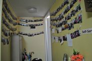 它交通便利,距离弘益地铁站2号线只有几分钟步行路程。旅馆房间干净整洁、带有厨房,有免费上网、早餐及行李寄存服务,最重要的是老板娘人很好,会讲英文。这次住了之后,果然非常满意,名不虚传。 从登记处一进门口摆放的给住客使用的雨伞,到墙上挂着来自世界各地游客与店主的合影,我们不难看出店主非常有心地经营着这家旅馆,网上强烈推荐看来不无道理。 布置温馨的小餐厅里,桌上放着店主一早煮好的鸡蛋,游客自己动手烤面包、涂果酱、倒牛奶或果汁,一顿营养丰富的免费早餐给游客家的温暖感觉。