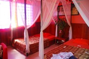 选择它的理由:(回头去要广告费哦。。) ★ 地理位置还算不错,步行至老市场及酒吧街十分钟左右,巷口有二个小超市 ★ Free tea and coffee 天天受益,早上看日出可以用自己的杯子打杯热茶或热水。。 ★ Free fresh fruit 某某人天天吃香蕉无数,MS还是皇帝蕉 ★ Free 24hr internet 一楼柜台边有免费电脑上网 ★ Free wifi 带本本和手机都可以在房内上网 ★ Free pick-up TUKTUK接机 ★ Free pool table 餐厅有桌球,朋友们玩过 ★ Free bikecycle 朋友受益,他骑自行车看了巴肯山日落 ★ Free large screen movies 在餐厅,同伴们边吃饭边看英超得来 ★ Safe deposit boxes 前台有,没用过 ★ 24hr Security 安全还好,如果是女生一个人住,不要回来的太晚 ★ Hot Water 独立电热水器,水量还可以 ★ Cable TV 有线电视,节目挺多。偶们只看过一次,还是羽毛球泰国公开赛 ★ Laundry Service 偶们就在卫生间洗得,房间衣柜里有衣架(建议带根绳子方便晾晒) ★ Travel and tour information 包车租车方便且价格公道,走廊里有小黑板注明,直接找前台MM预订。 ★ Free message 免费15分钟,入住前二天提前预约后到一楼按,手法普通,胜在免费,偶们享用过啦,他家马杀鸡3刀一小时,比泰国的便宜许多,晚上回来预约了几次想按按,都被告之人多要排队。排到我时我早去见周公了。。 ★ 服务生足够NICE,一见你就笑。。出门进来随声问候(店小不要紧,服务人员一定要阳光,客人才会心情好)某人让服务生教柬语,说了十几遍都不对,服务生MM快笑晕了。。 ★ 缺点:他家的床有点软。不适应的要留意一下。。