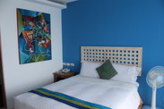 这是整次旅行中最不满意的酒店。不是说酒店设施不好或者不卫生,原因只有一个就是完全没有服务态度。 这家是booking上订的,之前评价不多,评分算中等,我看着房间漂亮,就没想那么多订了。甚至在确认订单之后收到老板的邮件(提供接驳服务以及其他服务的广告邮件)还称赞说原来台湾的酒店都那么有人情味。谁知道在到了之后发现原来完全不是这样,老板娘就坐在前台看我们上下车拿行李完全没有要帮忙的意思就算了,登记的时候也没什么好脸色,问她租机车的服务的时候甚至是一副你爱租不租的表情。房间在四楼没有电梯,当时似乎店里也只有她一个人在,没有男丁能帮忙什么的,我们俩就慢慢的把行李箱给弄上去。 其实最气人的是早餐,老板娘给我们的早餐券说是在合作的早餐店里,在垦丁大街上,早餐券背后有地图。跟我们说的时候说是出门右转直走三分钟左右就能到了,我们哪想那么多啊就答应着了。结果第二天早上完全找不到那个神奇的早餐店甚至路人也不知道,后来问我们包车的司机才知道这家早餐店从我们酒店走过去起码要20分钟,我真是呵呵呵!包车司机还说来着,我们住这家谁都知道没有服务态度的,大晚上的要是有人来找房他们会想尽了办法留客,有时候甚至1000台币就让住,听完简直是晴天霹雳。 客观些说,酒店的配置倒是不错,环境挺好,交通也便利,当然如果你能够忽略老板娘的态度的话还是能住的很舒服的。房间装修的倒是挺漂亮,带阳台的。推荐指数零颗星。