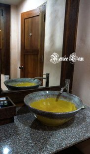 酒店前台比较小巧,有很多原始部落感的雕像,还有一些小手工。正如酒店名字所示,这里是一个gallery!墙上挂满了大概是当地艺术家的作品(泰国艺术的影响力近几年在亚洲是节节攀升!),部分是油画,部分是acrylic。一楼到二楼之间的夹层,算是个小休闲书吧吧。房间的装修以实用性为主,比较简单