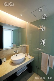 这是一家新开的酒店,硬件设施达到5星标准,房间大,设计简洁时尚,窗台还提供功夫茶茶具和免费的饼干,阿里山高山茶包。2张大大的床软硬适中,一家三口绝对睡得舒舒服服。卫生间同样大,干湿分区,冲淋房和浴缸都很有设计感,洗护产品是瑰柏翠的哦。