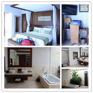 这家酒店也是我们巴厘岛这几天住的最满意的一家酒店,我们住的是带私人泳池的小别墅,设施非常齐全环境非常美,而且服务很到位,check in的时候前台就会问第二天的早餐要吃什么让我们选择,然后选择是要管家送到别墅还是我们自己到餐厅吃,一切搞定!转天不用早起,因为9:00管家会把早餐送到别墅来,早餐很丰盛!每一份食物都是用保鲜膜包好才送到别墅的,应该是怕送来的路途中会沾到灰尘,很贴心的服务。