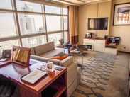 抵达Jumeirah Emirates Towers. 服务生都好有礼貌~很耐心地帮我们安排高楼层并且提醒酒店露台可以看见迪拜塔的烟花秀,但丝毫阻挡不了我感受跨年气氛的心!全景观光电梯、28层的客房、欧舒丹洗浴用品、咖啡奶糖包、还有准备好的气泡水与苹果,真的好贴心~