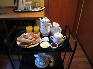 今年和老公再次来到巴塞罗那,住了三个晚上,都住在Marina View。从地铁Drassanes站出来往海边走,走到流浪者大街和码头交汇处的哥伦布雕像前,面对大海往左手边走大概两三百米就来到位于哥伦布大街22号的这家旅馆。哥伦布大街上的这一溜老房子高大堂皇,不太像会有小旅馆在里面,旅馆也没有任何标记在外面,所以要仔细数门牌号,22号的这幢楼还有其他住户,不要按错门铃啊。 旅馆的经理Paddy特别善谈,跟我们一通神聊。我先问他是不是西班牙人,因为他的英文里一点西班牙的味道也没有,果然他是个爱尔兰人!而且还做过英文老师,怪不得英文那么标准。他还是个职业小提琴手呢! 特别值得一提的是我觉得他的服务特别贴心。因为这家旅馆只有六个房间,如果定了不去,他们损失还是挺大的,所以必须事先付款的。我们早在3月份就定两个房间,付了定金。但是离出发时间还有一周的时候,跟我们同行的弟弟因为有事无法成行,我抱着试试看的心态给Paddy写信看能不能不要罚款。说明情况后Paddy答应更改订单,让我们减少了一大笔损失! 我们在Marina View住了3个晚上,前两个晚上住的是Arcade房间。房间不大,应该说有点小,但还算很舒服。最让我们惊喜的是早餐!Marina View占了4楼的一半,开了6个房间,但是没有地方做早餐厅,所以早餐是Paddy送到房间里来的——一个小推车里放了十几个大大小小的刚烤好的羊角面包(我的最爱!),还有烤面包、果酱和一大罐咖啡。而且整套餐具非常讲究,是很好的瓷器呢! 我们离开巴塞罗那到Girona和Cadaques游玩了两天,把大件行李留在Marina View,最后一天回到巴塞罗那时最大最好的那间“哥伦布房间”(Columbus Room)终于有空了,这间房间果然是Marina View的镇店之宝:座在床上,从落地玻璃窗正好看到海港的景色,在小阳台上一扭头就看到铜柱上的哥伦布,距离300米之内!房间里用的家具也是老式实木家具,很有点上世纪的感觉呢。总之,这间房间和窗外的风景让我们非常留恋,拍了许多的照片呢。