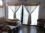 一进到Lamphu House便是一片绿意盎然的景象,感觉真是舒适!Lamphu House的设备:Locker room、有线网络机台与无线网络。Locker room的使用只需要押金,退房后凭钥匙退还,很多人在这边买帆布袋,疯狂采购之后就把东西放在里面,挺方便的。有线网络机台每小时30Baht。收费跟有线的一样,但好处是十天之内没用完可以不限次数重复login使用,其实房间也可以连无线网络,只是有些房间信号比较弱。没有冷气有热水房,租一天房价300Baht,超便宜,干净舒适,但晚上吵了点就是了。 隔天被换到有冷气有热水房,房价就变成650Baht,贵了点,但安静很多,睡的也比较舒服,还有个大阳台!