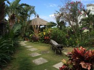 整栋建筑是巴厘岛风格,外墙画满了热烈的红色花朵,加上被爬山虎慢慢蔓延,看起来像个植物园。院子里至少有30种植物,虎皮兰、鸡蛋花、三角梅、铜钱草……都是野生野长的性格。花园外就是船帆石海滩,“你听到的海浪声来自巴士底海峡”,民宿的主人阿美姐这样介绍到。阿美姐是一位排湾族原住民,老公尼尔是位英国人,一家人也住在园子一角,花园红了是她当成家来打理的地方,另外在垦丁大街阿美姐还经营着3家餐厅。中信出版社有本书《每个店主都有一段江湖传说》,其中有篇文章《排湾族女人的生活力》就是介绍“花园红了”和阿美姐的