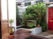 坐落在距离轻轨站20分钟路程的一条小巷子里,周边的餐馆便利店很多,离火车站也近。装修风格是偏中式的,漆红雕花大门,小庭院里流水金鱼花草木椅一样不少。第二天的早餐是西式的,面包烤出来一面是笑脸一面是咖啡杯,亲切感十足。