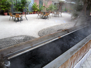 饭店里也能泡温泉。而且温泉的水温很高,可以煮蛋。煮蛋的池子散发出阵阵硫磺味儿,但还能忍受。
