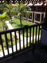 酒店提供的WELCOME DRINK,真的是很生津止渴啊,炎热的夏天来上一杯真是透心凉!把我们送到酒店之后,小乐的工作人员才离开了酒店。 PS:来不及在机场兑换马币的TX,可以直接找小乐的工作人员兑换,汇率也算合理,大概是100RMB=48RM,最好之前发封邮件告诉他们大概要兑换多少。 其实拉古娜的房型基本上都是一样的,如果住满4个人房价相对还便宜些。我们住的是园景房,相对池景房和海景房来说便宜些,性价比很高,阳台可以看到楼下花园的景色。而池景房的话听别人反应相对会吵一点,因为有小孩经常在池边玩耍。海景房离海滩近、景观也好,但是价钱贵,如果你不常呆房间的话,没什么必要住海景房,毕竟大家来了酒店要不就睡觉,要不就去海边玩,没什么闲情逸致在酒店赏景。 每天晚上酒店都有乐队表演,住客还可以根据自己喜欢点歌。英文、中文、马来歌都可以。 这时候你可以选择坐着喝杯东西听音乐,或者面朝大海躺在沙滩椅上看星星,听着背后传来的歌声…… PS:热浪上面经常看到猴子爬过酒店的安全防护网进到酒店区域,所以建议大家尽量别将衣服晒在外面,就是晒最好拿东西夹到,因为听小黑讲,猴子会偷旅客的衣服玩,但是它们不攻击人的,所以这点请放心。
