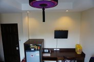 2015年5月23日 推荐 8分 从清迈机场到塔佩门附近的酒店花了120株。订“家在清迈”时以为是双床房,后来留意到是大床房时想改已改不了,想到只是一晚过渡将就将就吧,也给自己一个教训,一米五的床挤三个人去睡有点考验人,并且房有点西照,我们下午去到时房内烤得挺热的,不过,麻雀虽小五脏俱全啦,房间内外都收拾得很干净,要喝热水及冲咖啡统一去到二楼。工作人员也很友善,主动给了我们地图