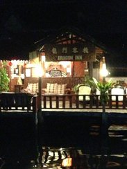 一出机场,正准备打车,有一个皮肤黝黑的当地人上前用夹杂着口音的英文询问“Ms. Xu?dragon inn?”。一边猛点头,一面心想:原来酒店还派车来机场接我们啦,dragon inn比想象的要好嘛。正开心着,那个人就上前主动将行李都揽了去,瞧瞧人家的服务意识。到最后才明白dragon inn是木有接车服务的,派车的是Kapalai! 出发前就在官网上预定了Dragon INN,结果被追浪告知Dragon INN近期出现了老鼠和小强,好可怕~我最怕的东西。但是已经押信用卡了,要退是不现实滴,抱着忐忑的心入住了。还好几天下来,除了偶有一只小强造访了我们的洗手间外,还是没有过多打扰我们。 Dragon INN由一片建在水上的屋子连接组成,从提供给背包客的long house(多人一间),到luxury suit,多种房型可以选择。我选的是Budget Qeen Bed Room,每天66马币,含早餐,还每人送一张当地Aquarium的门票(可惜学习OW时间太紧张,都没来得及去水族馆转转),性价比还是很OK的。阳台和洗手间连在一起(洗手间的门 见上图6),初次入住时很能体会大自然原本的粗狂感。酒店的位置也很不错,离很多潜店都很近,离超市、码头以及觅食的地方都不远。