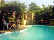 就在平河沿岸,类似四合院,有美丽的小花园和泳池,房间也和其他一样,简单而干净。