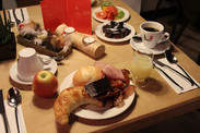 酒店是依山而建的,超大的房间,卧室是两张单人床,放了温暖巧克力,房型是长条的。
