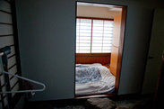 这家旅馆的客房是和式的,也就大家打地铺,睡在榻榻米上。到日本试试日本式的睡觉方式,不可错过这样的机会。 石亭的入口处。进去左边是接待处。接待员7/24上班,随时提供服务。个个热情友好。不过我提出给照个相,被婉拒。接待处前面一小块空间,布置了一些鹅卵石、小石块、小草。注意那个放雨伞的架子。那些雨伞供房客免费使用。当然用完要记得放回去。这次我们日本之行,因为冬季,只碰到一天下雨,其它都是好天气。 打开房门,先是一小间鹅卵石和石板铺地的鞋帽间。它位于大门和第一道拉门之间。空间虽小,却设计合理、实用。首先它可以解决大门外一大堆散乱鞋子的不雅景观问题;其次还是一个在小空间内仍然创造出一点可贵纵深感的妙笔之作。这里也显示出日式拉门的简洁、灵活特性的一个侧面。轻巧的拉门,起到了一堵墙的作用,但又避免了实墙带来的笨重、晦暗之感。这应该是所谓的玄关(genkan),拉门可以把玄关和房间完全隔开。 再往里就是房间部分。地上铺了榻榻米,中央一张小木桌子。三面墙上有日式拉窗。我检查了,拉门拉窗都只有一面糊了纸,而不是传说的两面。可能考究的人家糊两面?再往细想,要我我也只糊一面。另一面的木格子让它们外露着,那样更好看些,更显出日式房间的禅意来。