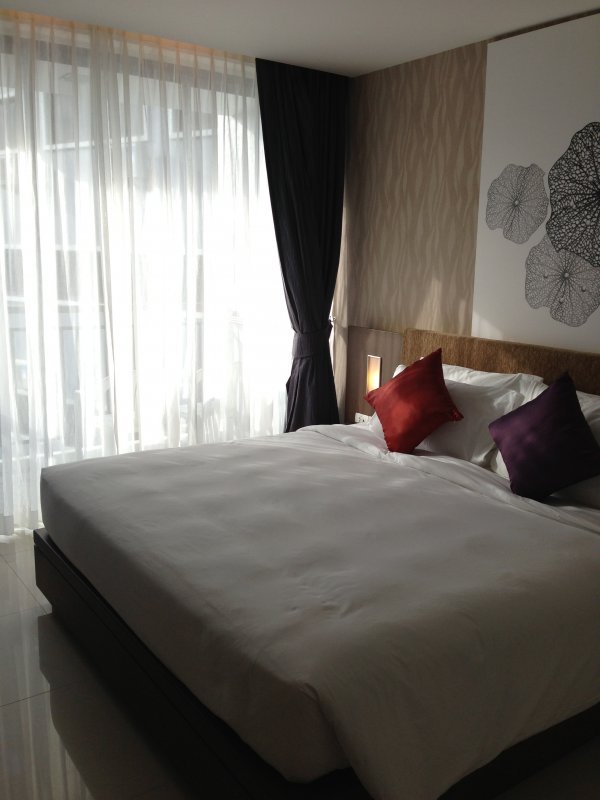 地理位置在Ratuthit Songroipi Road,是PATONG的主街,在MECURE对面。地图上说是离酒吧街900米,后来走了几次觉得不止,而且沿街都是店铺,人多不好走。起码走15分钟了。第一晚房间是向街的,开窗听到TU TU车震耳欲聋的音乐。后来两晚换到了向内的房间非常不错。服务人员很NICE。