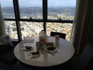 布里斯班的Meriton在booking上排在第一。五个人一晚230澳元,性价比非常高。前台很nice地给了72层的高层房间,一进门我们就不由得“哇”地一声。居高临下的270度无敌河景! 房屋布置非常现代实用。厨具、餐具一应俱全。以前每次旅行都是带了一大包脏衣服回家,这次发现有洗衣烘干设备的必要性,尤其是带着一个随时弄脏衣服的小孩。
