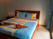 沙美岛上国家公园门口的Mossman House 房间陈设虽然简朴,但是整个房间非常洁净。入住2楼大房间,1200B。刚要交钱那小姑娘却说只能住1天!因为明天有预订的,我们得搬到楼下住,都是1200B。整条街问下来,还是这家性价比好。房间特别干净,院子里很多树,而有很多家酒店忙着盖房子建筑垃圾都来不及处理,有的采光差甚至没窗象鸽子笼。拉门玻璃非常明亮,阳台有点东南亚的小悠闲的味道,看着就舒服,早上阳光很足,下午就凉风习习很惬意了。阳台与左右邻居都是想通的,不到一米的高度,一跨就可以去邻居家串门了。(入住时间:2013年1月)