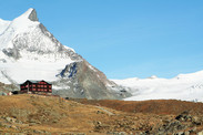 通过http://www.fluhalp-zermatt.ch下订单,没有厨房。山上其实也只有它一栋建筑物,其他什么也没有,只能在他家订餐了。 入住高山旅馆,这是此行住宿花费最贵的地方了,74法郎/人(住30、晚餐32、早餐11)。开始我们还犹豫有没必要住山上还是住山脚的小镇,毕竟它就是孤零零的一座房子啊,前不着村后不着店的。我们选择在山上住一夜,很大程度上是为了看日出,看马特洪峰的迷人倒影。我们就是在做行程时,看到一位前辈拍摄的马特洪峰披着一身红霞倒影在湖面的相片,相片使我们震撼了。我们到瑞士旅游就是要看风景,看最美的风景,住高山旅馆就成了我们唯一的选择。 但事情往往是希望越大,失望就越大,第二天一早天下起了雨,望着乌云包裹住的马特角峰,我们只能带着遗憾的心情离开了,也因为天气不好,我们也取消了下午上小马特洪峰Matterhorn glacier paradise的计划,这是我们15日通票的最后一天了。这也是我们此行最遗憾的一天。幸好,我们在上山的时候天气很赞,看到马特洪峰美丽的风景,还和肥肥黑白杨有亲密的接触,也算是个安慰奖吧。 前面的住地同他是没有可比性的。当你身处在高山之上、冰川脚下的一座孤零零的高山旅馆时,你就觉得这74花得不冤。这是一种完全不同的感觉。在上山的路上,我老妈一边为美丽的风景感叹一边因为累不停的唠叨:这荒山野岭的一个人也没有,谁会跑到这高山旅馆去住?我看今晚可能就只有我们两个傻瓜住那呢。可当一到高山旅馆,呵呵,“傻瓜”还不少呢,敢情有30人了,而亚洲人只有我们两中国人,还有3个日本人。