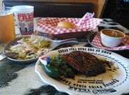 5点前赶到大牛排馆,以为能看到挑战72盎司牛排的场面,结果没有,挑战台上空空如也。店铺西部风格,服务员牛仔装扮,食客很多,没有小店的亲切感。点了最小份的牛排,怕生要了全熟觉得是个错误,味道不错但没了肉汁的鲜美。旁边就是大牛排开的旅馆,来杯啤酒,吃完直接入住。今天奢侈了,牛排晚餐27块,旅馆80。挣人民币花美金,伤啊! 房间西部风格,大床又可以转圈睡了。椅子靠背上刻着一颗星,德州绰号孤星之州。唯一缺憾是和隔壁房间屋里有道门隔着,难道原来是套房吗?虽然锁着,但是觉得怪怪的。隔壁一直在看电视,听的真真切切。